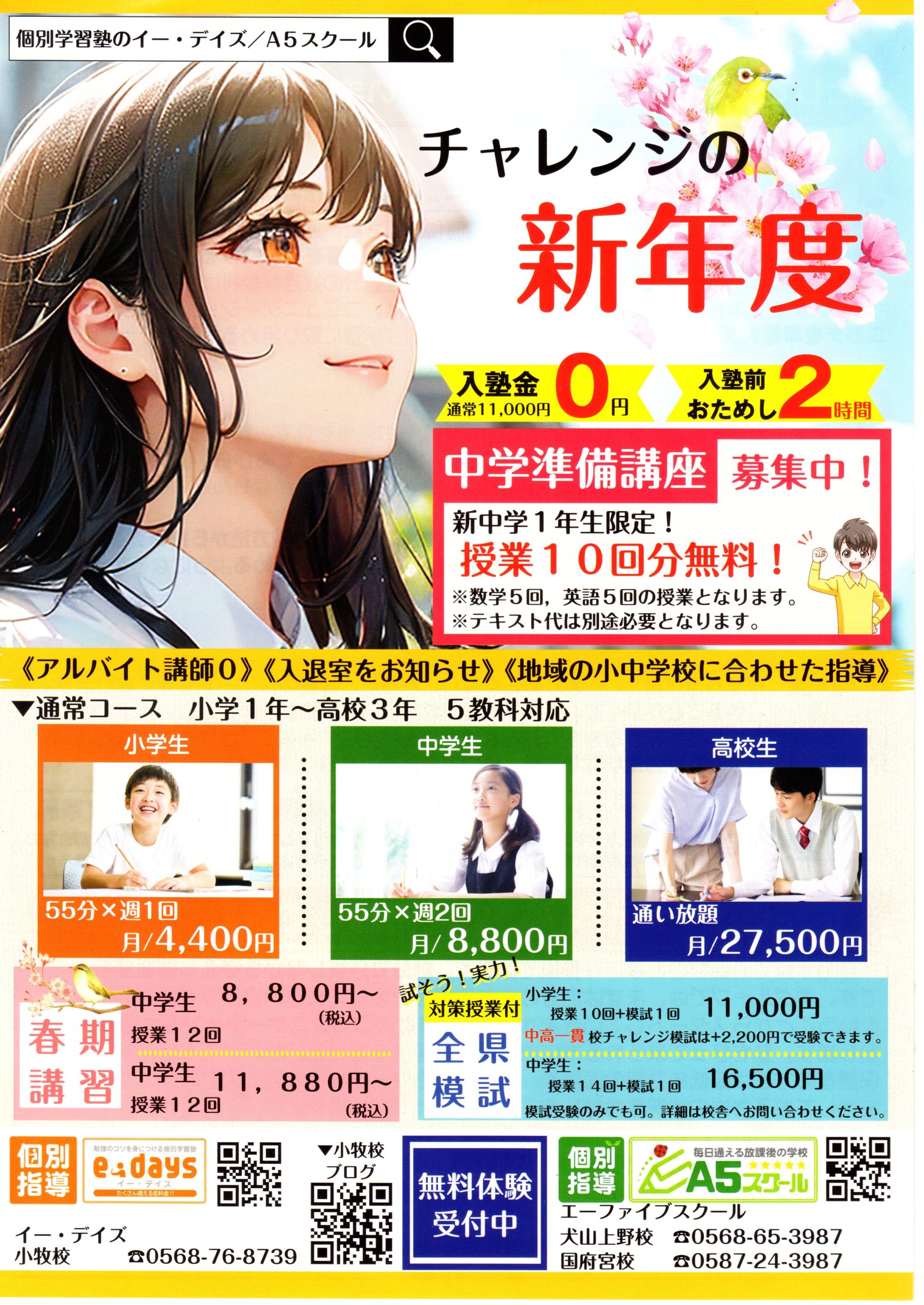 この春がはじめ時!全国模試トライアル実施中!「今なら入塾金0円!入塾初回特典あり!」春期講習性も募集中!