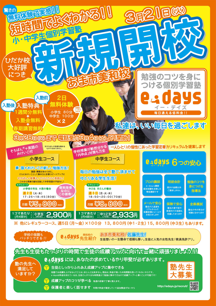 2017年3月21日「あま市美和校」新規開校のお知らせ