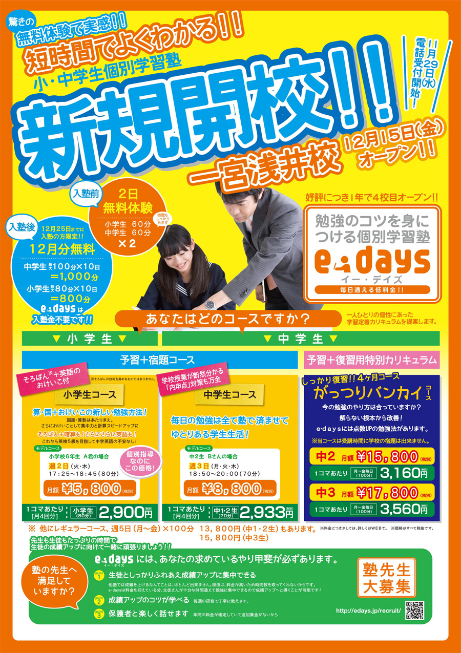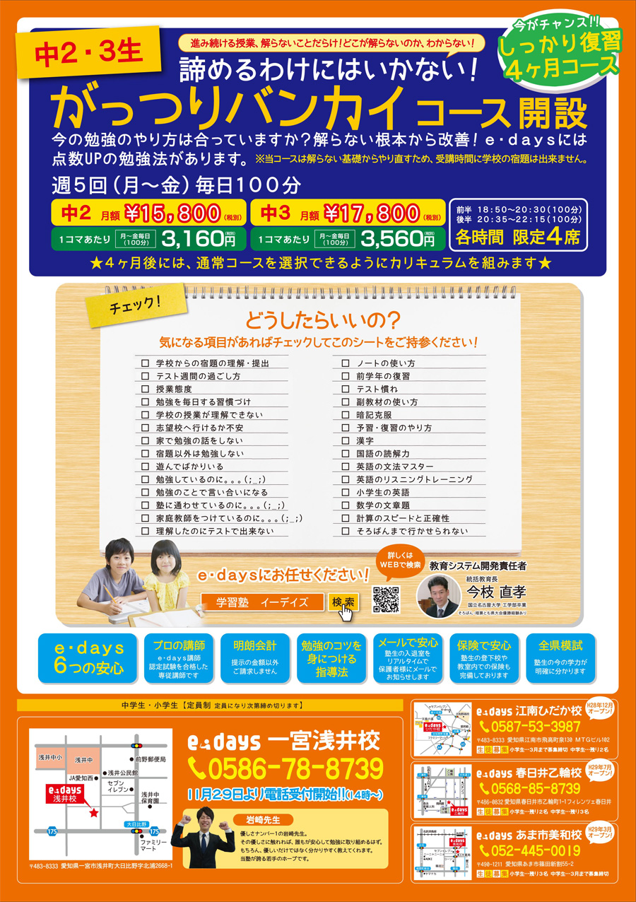 2017年12月15日「一宮浅井校」新規開校のお知らせ
